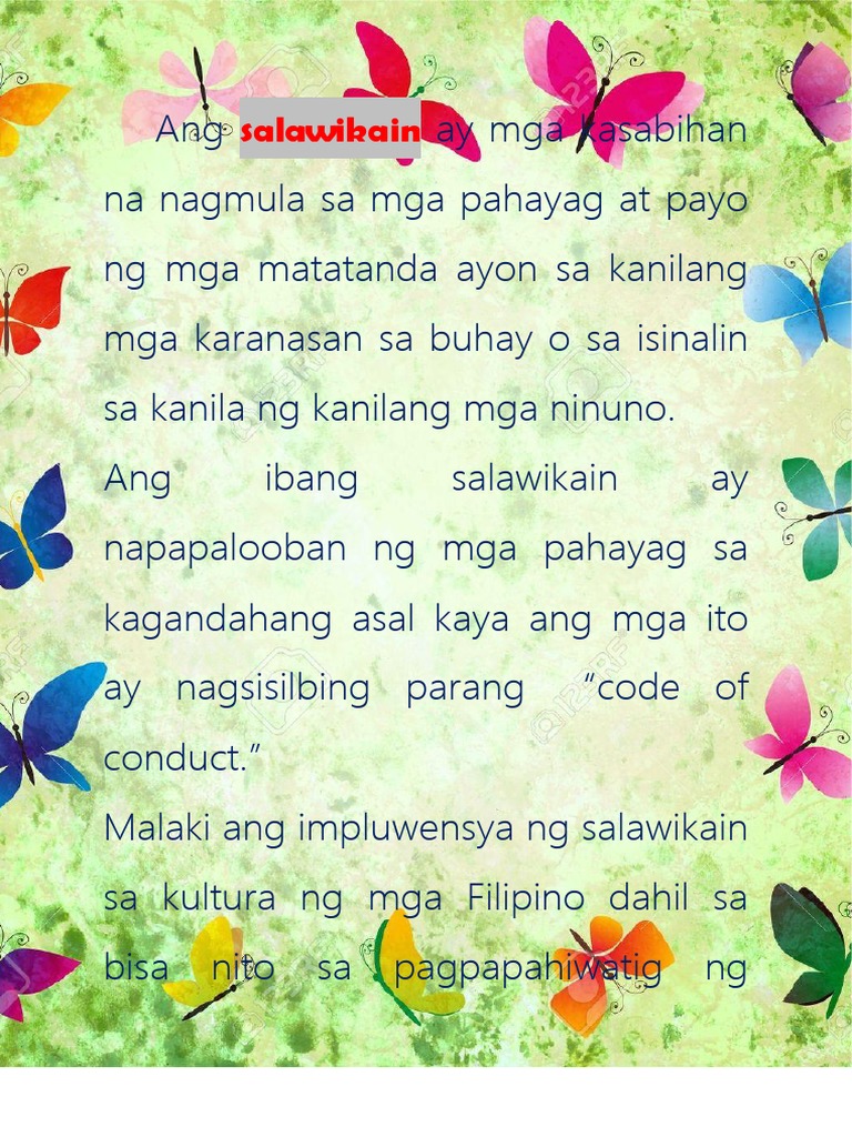 Ibat Ibang Daluyan Ng Matatalinghagang Pahayag Mother Goose Rhymes Ito ay bukambibig na hango sa karanasan ng tao at nagsisilbing patnubay sa dapat gawin sa buhay. Mga Salawikain at Ibat Ibang Araling Pilipino Manila Philippines. Aral ang sandata para sa mga bata.
