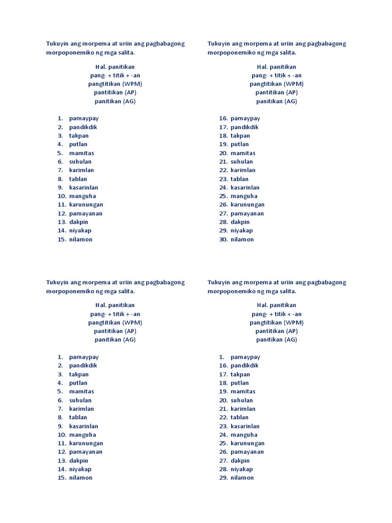 Quiz Sa Pagbabagong Morpoponemiko Pdf