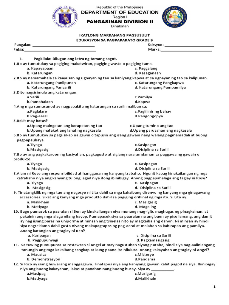 May kilala ka ba na ang kulay ng balat ay iba sa iyo o. Ang tama ay pagsunod sa mabuti Ito ay totoo dahil A Umaayon sa lahat ng panahon from MBA 201 at Subic University of Immaculate Conception of Zambales Inc. Sa loob ng kahon gumuhit ng isang bagay na sumisimbolo sa iyong track o kurso na pipiliin sa senior high school.