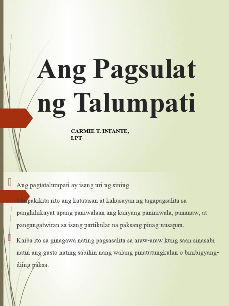 Talumpati At Iba T Ibang Uri Nito Docsity
