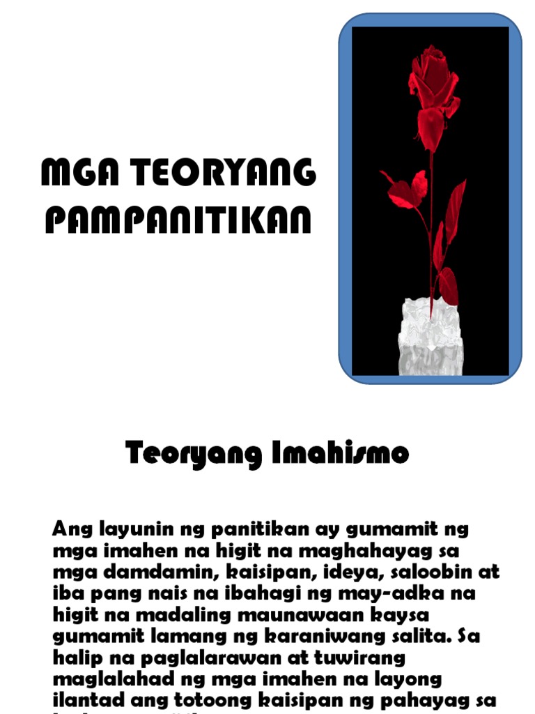 Paula Jean Welden was an American college student who disappeared in December 1946 while walking on Vermonts Long Trail hiking route. Kahit sino ano mang bagay at lipunan ay dapat makatotohanan ang paglalarawan o paglalahad. Ang teoriyang pampanitikan ay ang sistematikong pag-aaral ng panitikan at ang mga paraan sa pagaaral ng panitikanMayroong ibat ibang teorya para sa pag-aaral na ito.
