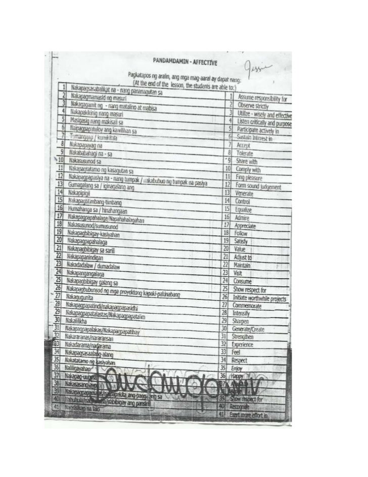 Mga Layunin Sa Pagkatuto Sa Filipino